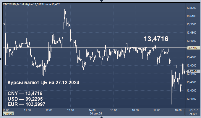 Китайский юань отыграл значительную часть утренних потерь и лишь незначительно дешевеет на Московской бирже днем в четверг, рубль растерял темпы повышения на фоне завершившегося налогового периода декабря, пишет Интерфакс. Согласно календарю Федеральной налоговой службы, в этом месяце единый день налоговых выплат был перенесен с рабочей субботы, 28 декабря, на среду, 25-е число. Таким образом, накануне в бюджет были перечислены налог на прибыль, НДПИ, акцизы и страховые взносы. Торги долларом и евро не проводятся на Московской бирже с 13 июня из-за санкций. В связи с этим наиболее подходящими ориентирами колебаний курса (в том числе для внебиржевого рынка) являются котировки однодневного фьючерсного контракта с автопролонгацией на курс "доллар США - российский рубль" (USDRUBF) и такого же контракта на курс "евро - российский рубль" (EURRUBF).