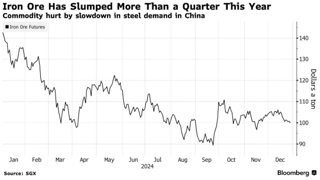 В этом году стоимость железной руды снизилась на 29%, что связано с длительным замедлением экономики Китая, особенно в секторе недвижимости, несмотря на попытки властей преодолеть кризис. В то же время поставки от горнодобывающих компаний в Австралии и Бразилии, которые являются крупнейшими экспортёрами, растут.