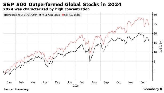 Индекс MSCI All-Country World Index в новом году остановился после роста более чем на 50% с минимумов 2022 года. Инвесторы опасаются, что потенциально масштабные пошлины со стороны США могут нарушить мировую торговлю. Политическая неопределённость в Европе и замедление экономики Китая также повлияли на настроения инвесторов.