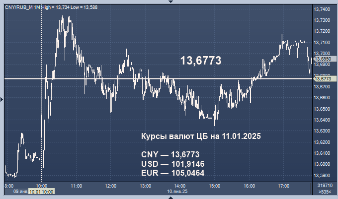 "На валютном рынке рубль в целом выглядит стабильно и при прочих равных может остаться недалеко от уровней 14 руб. против юаня, 103 руб. против доллара и 105 руб. против евро. В первые официальные рабочие дни 2025 года не наблюдается заметного давления на рубль, несмотря на возвращение Банка России к покупкам иностранной валюты с 9 января. На следующей неделе при этом будут обнародованы объемы операций с валютой и золотом на ближайший месяц", - отмечает аналитик ИК "Велес Капитал" Елена Кожухова.