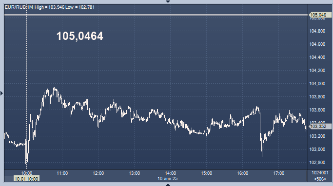 - 105,0464 рубля за 1 евро