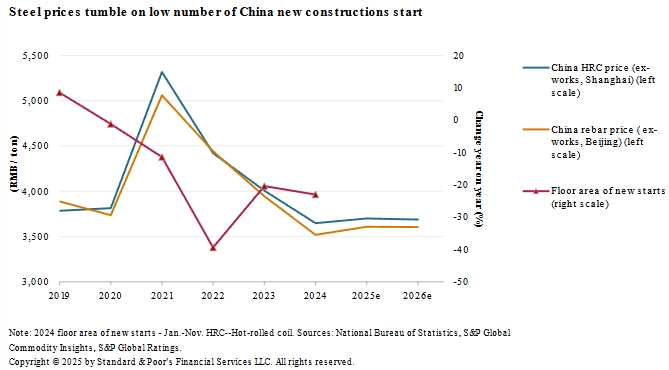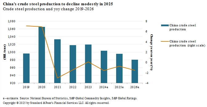 Производство стали должно снизиться в 2025 году, поскольку заводы реагируют на крайне низкую рентабельность. Это будет сочетаться с усилением государственного надзора за контролем производства, включая сокращения по экологическим причинам и приостановку замены сталелитейных мощностей.