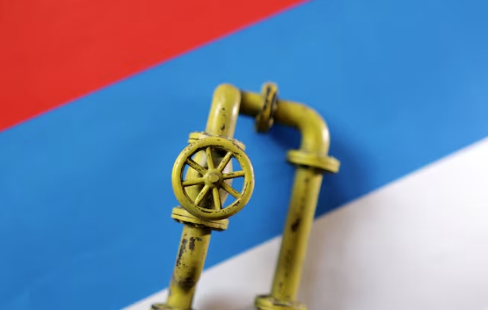 На этой иллюстрации, сделанной 7 сентября 2022 года, на российском флаге изображена модель газопровода. REUTERS/Dado Ruvic