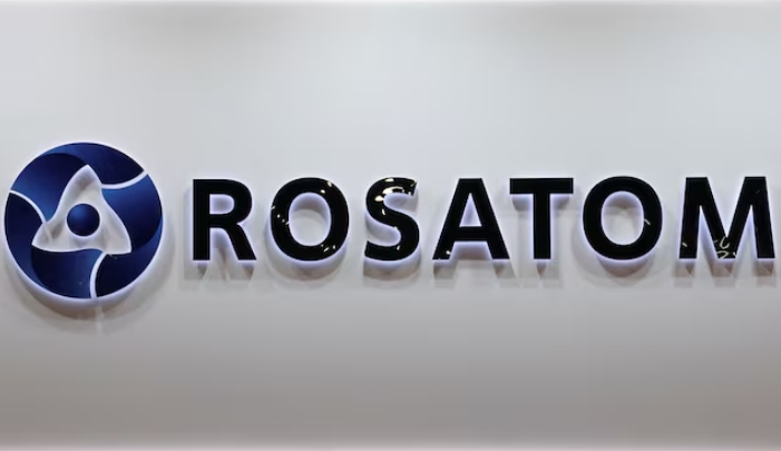 На снимке показан щит с логотипом российского агентства по атомной энергии «Росатом» на Петербургском международном экономическом форуме (ПМЭФ) в Санкт-Петербурге, Россия, 5 июня 2024 г. REUTERS/Антон Ваганов