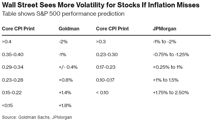 Уолл-стрит ожидает повышенной волатильности на рынке акций, если данные по инфляции не оправдают ожиданий.