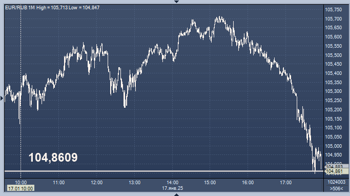 - 104,8609 рубля за 1 евро