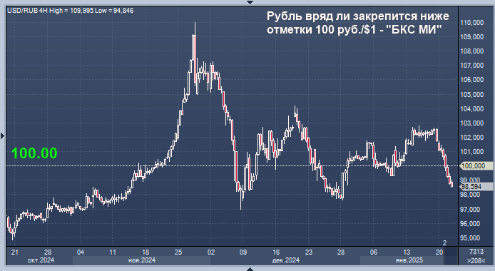 Рубль вряд ли закрепится ниже отметки 100 руб./$1 - текущий курс является хорошим моментом для покупки валюты, полагает аналитик "БКС Мир инвестиций" ("БКС МИ") Илья Федоров.