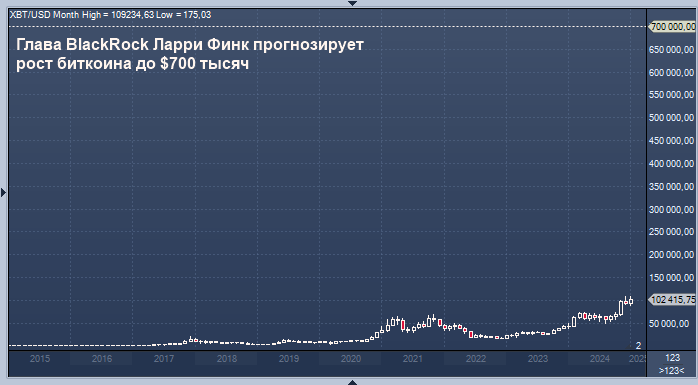 Ларри Финк, генеральный директор BlackRock, выразил уверенность в том, что стоимость биткоина может достичь 700 тысяч долларов, если в мире усилятся экономические и политические потрясения, которые приведут к широкому распространению флагманской криптовалюты.