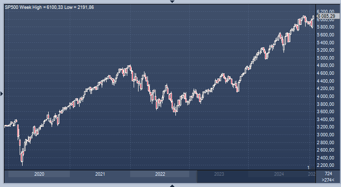 График индекса S&P 500 интервалом свечи в 1 неделю