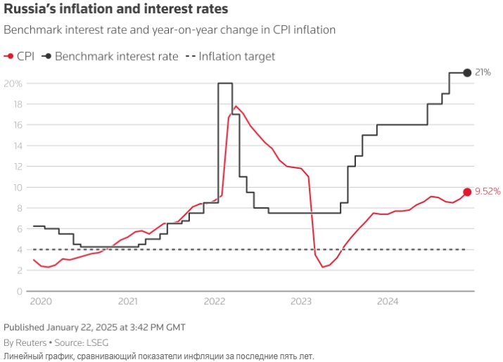 Экономические проблемы усиливают аргументы для президента России Владимира Путина в пользу переговоров с президентом США Дональдом Трампом о прекращении конфликта на Украине. 21 января Трамп заявил, что Путин «разрушает Россию», и указал на высокую инфляцию.