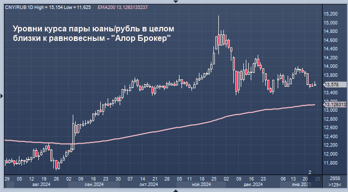 "По паре юань/рубль произошло закономерно торможение у поддержки 13,5 руб. за юань. Не исключаем увидеть попытку ее пробоя. Однако в целом сейчас ситуация на валютном рынке неопределенная и близкая к равновесной, нет никаких драйверов для сильного движения в какую-либо сторону. Поэтому наша рекомендация по юаню - оставаться вне рынка", - пишут эксперты в комментарии.