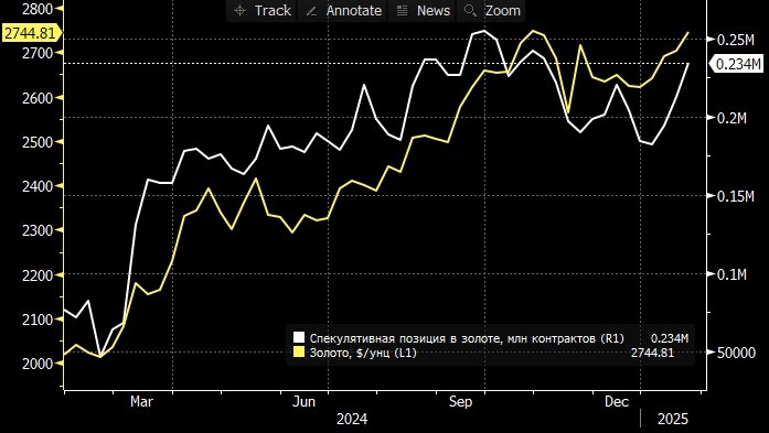 Хедж-фонды и другие крупные спекулянты увеличили чистые длинные позиции на 10% до 234 358 контрактов за неделю, закончившуюся 21 января, на следующий день после инаугурации Трампа. Согласно данным правительства США, опубликованным в пятницу, 24 января, этот показатель стал самым высоким за 12 недель.