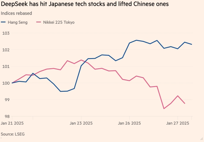 В понедельник акции Nvidia потеряли 589 миллиардов долларов своей стоимости, что стало историческим падением. Уолл-стрит и Кремниевая долина были охвачены паникой из-за угрозы, которую представляет для США китайский стартап DeepSeek. Это может привести к потере лидерства в сфере искусственного интеллекта и необходимости инвестировать сотни миллиардов долларов в базовую инфраструктуру.