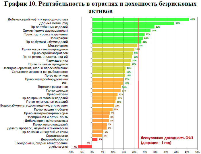 Данное объяснение выглядит вполне правдоподобным: по оценкам ЦМАКП, текущая бескупонная доходность ОФЗ со сроком погашения 1 год превышает уровень рентабельности оборотного капитала для компаний, на которые приходится 66% выручки.