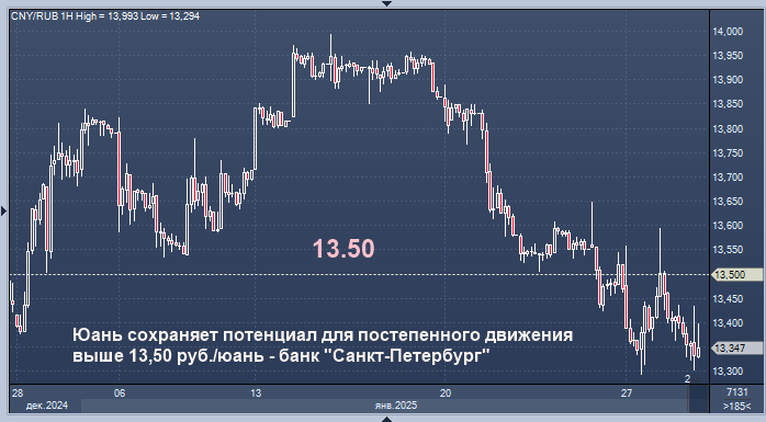 "Рубль во вторник тяготел к умеренному ослаблению, - отмечают аналитики. - Такую динамику российская валюта показывала в связи с окончательным уходом поддержки со стороны фактора налогового периода. Сегодня на Мосбирже курс CNY/RUB, впрочем, находится у 13,35 руб./юань. Другие курсы валют EM с утра двигаются разнонаправленно. В целом у курса сохраняется потенциал к постепенному движению выше 13,50 руб./юань".