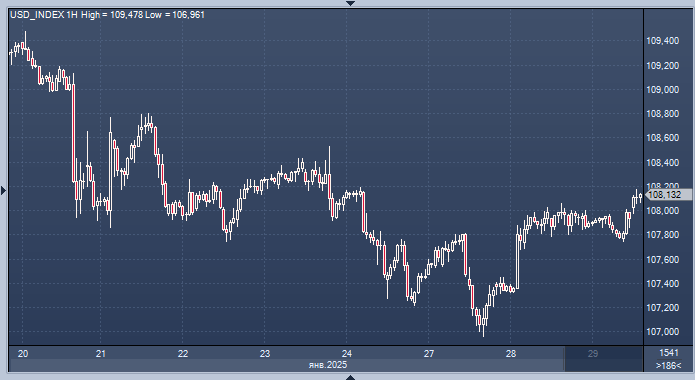 Индекс доллара, который отражает стоимость доллара по отношению к корзине других основных валют, вырос на 0,1% и достиг уровня 108.
