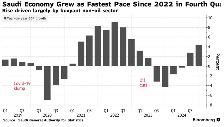 В четвёртом квартале экономика Саудовской Аравии продемонстрировала самый быстрый рост с 2022 года благодаря развитию ненефтяного сектора в рамках стратегии королевства по диверсификации экономики.