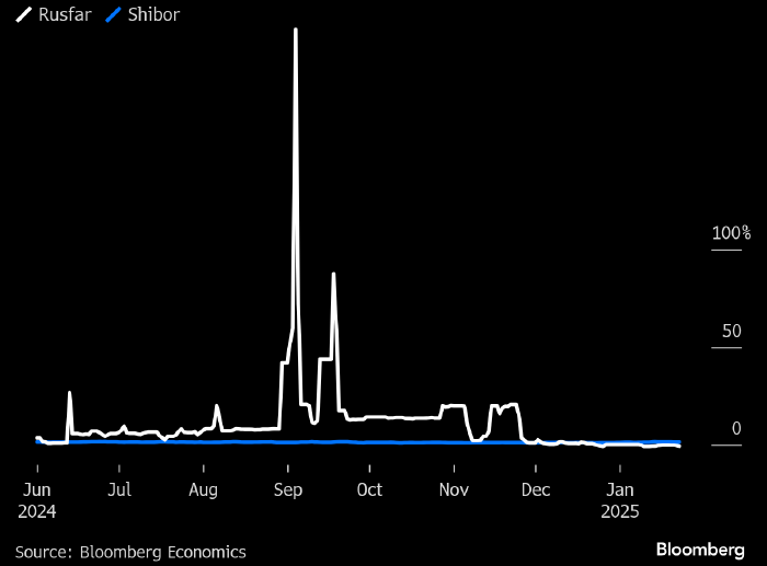 Китай стал главным торговым партнером России после того, как та оказалась отрезана от западных рынков после начала СВО. Однако поворот страны к китайской валюте был осложнен угрозой введения дополнительных санкций, что спровоцировало рост ставки по однодневным займам в юанях (RUSFARCNY) до 200% с лишним в сентябре.