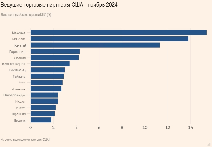 Часть последствий будет компенсирована ослаблением мексиканского песо и канадского доллара, но Трамп, по крайней мере, дал понять о рисках инфляции, введя более низкий 10-процентный тариф на энергоносители из Канады, которые являются крупнейшим импортируемым США товаром из этой страны.