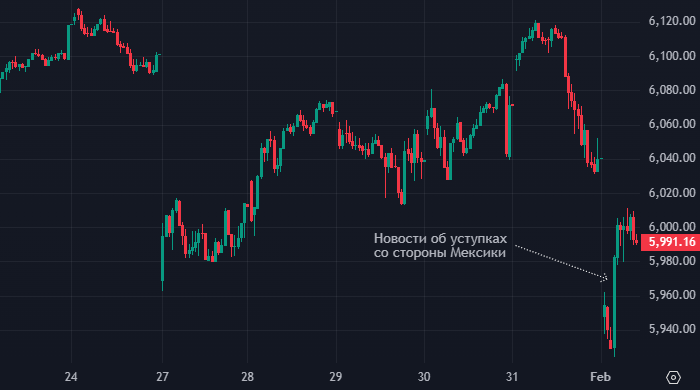 Вечером понедельника рынок акций США резко вырос, оттолкнувшись от трехнедельных минимумов по индексу S&P 500. Поводом для этого послужило сообщение Дональда Трампа в соцсети Truth Social о том, что президент Мексики Клаудия Шейнбаум согласилась пойти на значительные уступки Вашингтону.