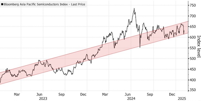 Акции азиатских производителей полупроводников с 2022 года выросли на 65%. Источник: Bloomberg