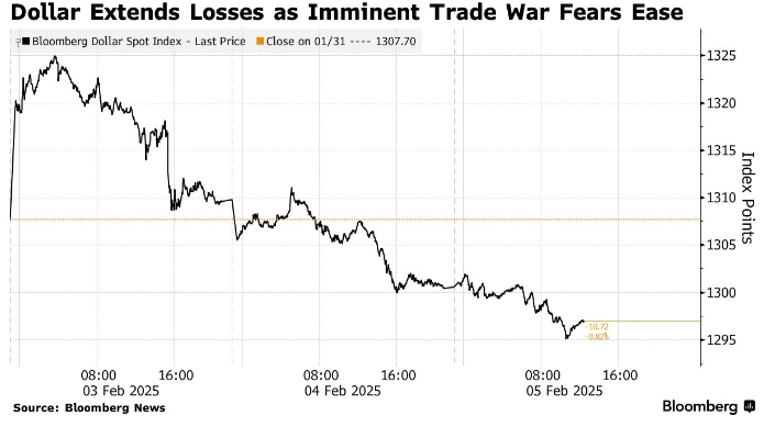 Доллар США слабеет из-за ощущения, что Трамп «будет использовать пошлины в основном как тактику переговоров для получения конкретных мер, а не для провоцирования торговых войн», — заявил Чару Чанана, главный инвестиционный стратег Saxo Markets.