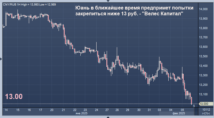 "Полагаем, что в ближайшее время пара юань/рубль предпримет попытки закрепиться ниже 13 руб. Если это не удастся сделать сразу, то вероятно получится ближе к концу февраля вместе с очередными налоговыми платежами", - прогнозирует аналитик.