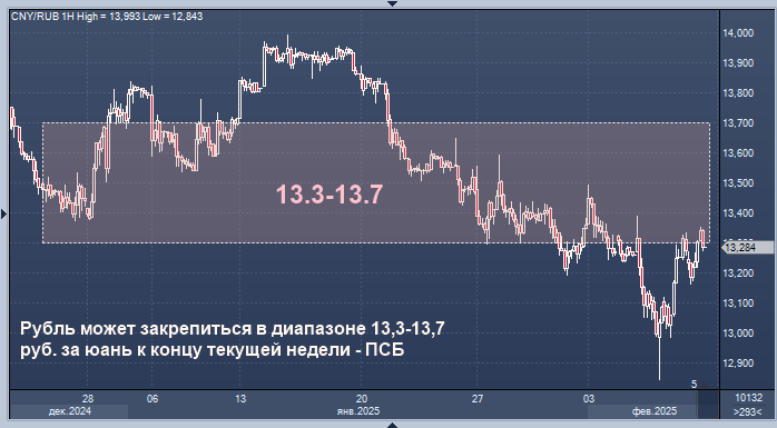 Курс пары юань рубль может закрепиться в краткосрочном целевом диапазоне 13,3-13,7 руб. за юань к концу текущей недели, полагает управляющий эксперт Центра аналитики и экспертизы Промсвязьбанка (ПСБ) Денис Попов. Биржевые торги юанем в прошедшую пятницу закрылись не так далеко от уровней недельной давности (чуть ниже 13,3 руб. за юань), что указывает на постепенное восстановление активности импортеров, отмечает эксперт. Также, обращает внимание он, по оперативной статистике ЦБ, с начала года фиксируется тренд по восстановлению валютных депозитов экономических субъектов, которые заметно сократились в 4К24.