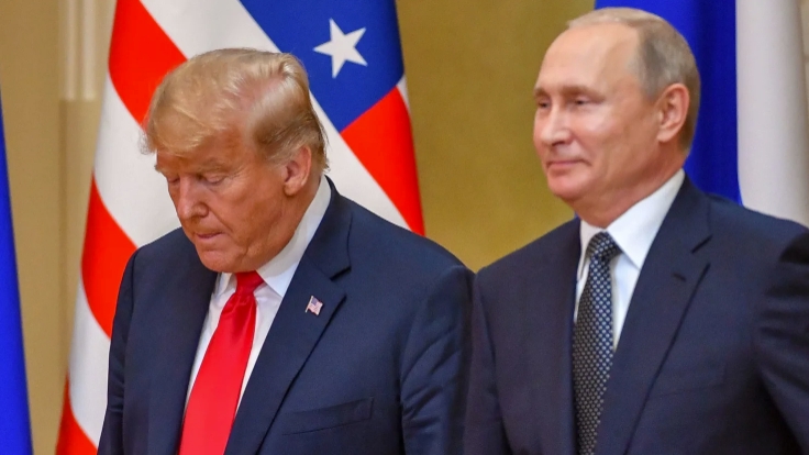 Дональд Трамп (слева) и президент России Владимир Путин прибыли на совместную пресс-конференцию после встречи в Президентском дворце в Хельсинки, 16 июля 2018 года. Юрий Кадобнов | Afp | Getty Images