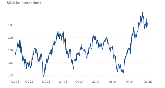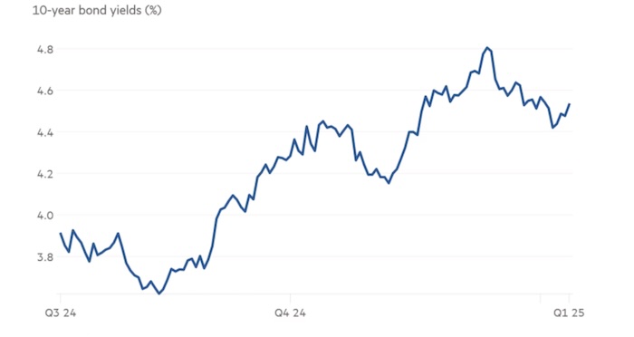 Управляющие активами впервые с 2017 года перешли к чистой длинной позиции по доллару в декабре, согласно анализу фьючерсных контрактов на валюту от CME Group. Однако с начала года доллар снизился на 0,4%. Ожидания более высокой инфляции также способствовали росту доходности 10-летних казначейских облигаций, которая в январе достигла 4.8%, самого высокого уровня с конца 2023 года.