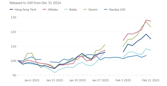 Рост в Гонконге отражает интерес иностранных инвесторов к Китаю, возродившийся после того, как DeepSeek, модель ИИ, разработанная с гораздо меньшими вычислительными мощностями, чем у американских аналогов, вызвала глобальную переоценку китайских технологических компаний.