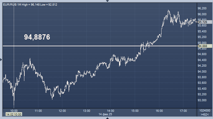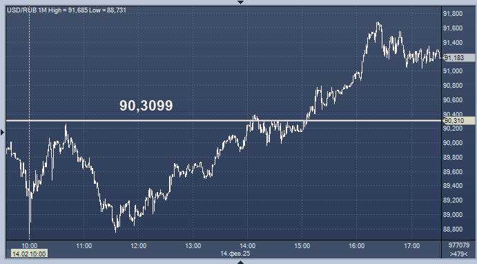 Юань повышается на Московской бирже в ходе торгов в пятницу. Рубль корректируется вниз после сильного роста по итогам предыдущих торгов, вызванного надеждами на снижение геополитических рисков и скорое урегулирование российско-украинского конфликта после новостей о телефонном разговоре президентов России и США. При этом рубль не отреагировал на решение Банка России сохранить ключевую ставку на уровне 21% годовых, так как оно было ожидаемо рынком, сообщает Интерфакс.
