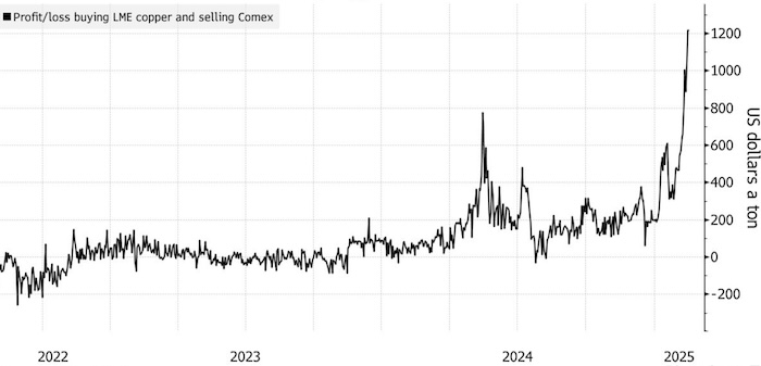 Мировые рынки меди испытывают серьезные потрясения, поскольку угроза введения тарифов на этот ключевой промышленный металл привела к рекордному разрыву между ценами в США и мировыми ценами на прошлой неделе. Президент США Дональд Трамп пригрозил ввести тарифы на медь, хотя не уточнил, по какой ставке и когда они могут начать действовать. Тем не менее перспективы торговых ограничений провоцируют лихорадочную торговлю: фьючерсы на медь на нью-йоркской бирже Comex в пятницу достигли рекордной премии по отношению к Лондонской бирже металлов, где наблюдается резкое сжатие коротких позиций.