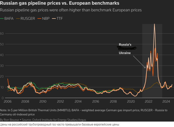 Как недавно написал Майк Фулвуд из Оксфордского института энергетических исследований: «Хотя Европа, и особенно Германия, возможно, и подсели на российский газ, учитывая объёмы импорта, он был не самым дешёвым».