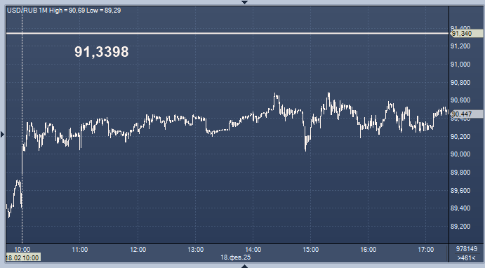 - 91,3398 рубля за 1 доллар
