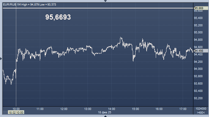 - 95,6693 рубля за 1 евро