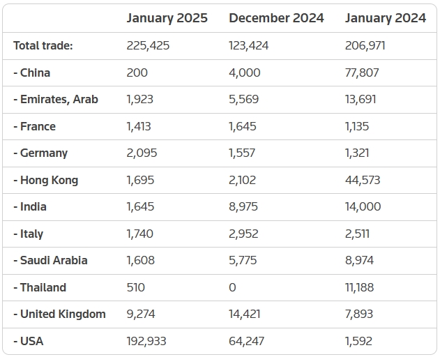 По данным Швейцарии, экспорт золота из страны в США вырос до 192,9 тонн в январе с 64,2 тонн в декабре. Это был самый высокий месячный объем экспорта в таможенных данных с 2012 года.