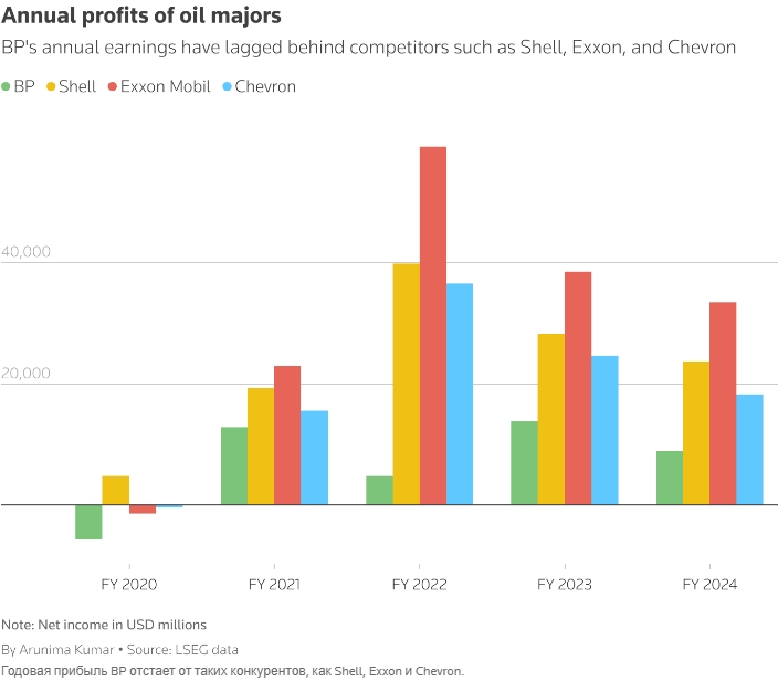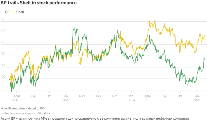 В последние годы акции BP отставали от акций конкурентов, и нефтяная компания уже отказалась от своего целевого показателя по сокращению добычи нефти и газа к 2030 году, как сообщило агентство Reuters в октябре.
