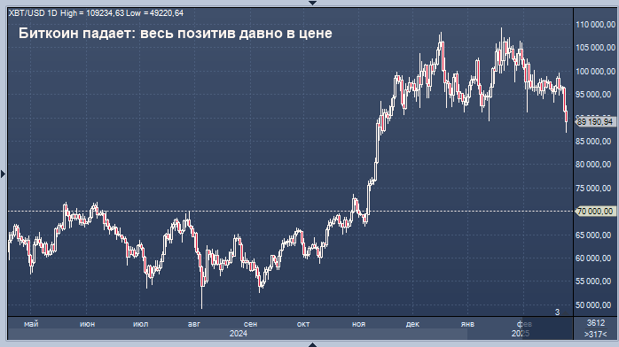 На опасения по поводу торговых барьеров США и результатов деятельности Nvidia накладваются беспокойства по поводу недавнего хищения цифровых токенов на сумму 1,5 миллиарда долларов с биржи Bybit, что подорвало доверие инвесторов.