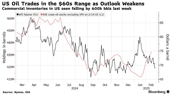 Цена на нефть марки West Texas Intermediate (WTI) оставалась на уровне около 69 долларов за баррель после падения более чем на 2% во вторник. Это стало самым низким показателем закрытия с середины декабря. Цена на нефть марки Brent составляла около 73 долларов за баррель.