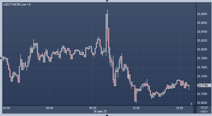 Курс доллара США к тайскому бату снизился на 0,18% по сравнению с уровнем закрытия предыдущих торгов и составил 30,73 бата за доллар.