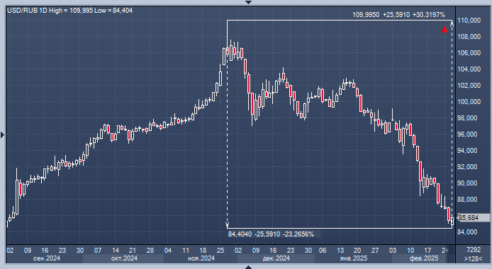 Укрепление рубля происходит из-за геополитических событий и сезонного снижения спроса на валюту со стороны импортёров. Однако пока сложно предсказать, насколько стабильным будет этот процесс и как он повлияет на цены. Об этом говорится в сообщении Центрального банка России по итогам заседания совета директоров в феврале.