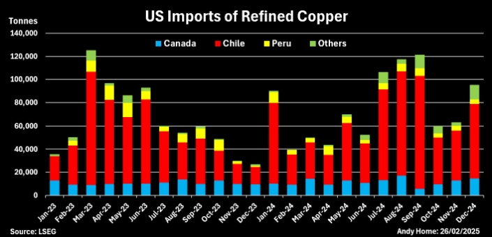 Очевидно, что в США существует возможность для гораздо более высокой премии, если со следующего месяца на медь будет распространяться та же ставка таможенной пошлины в размере 25%, которая распространяется как на сталь, так и на алюминий.