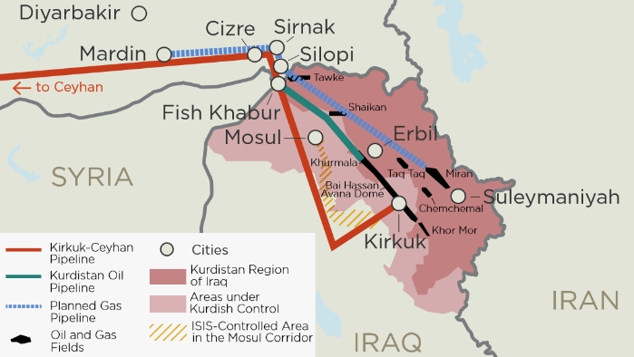 В течение длительного времени курдские власти использовали конституционную лазейку, которая позволяла им экспортировать нефть и сохранять определённую финансовую независимость от федерального правительства в Багдаде. Официальные данные об объёмах добычи в Курдистане не публиковались. По оценкам экспертов, этот показатель составлял около 440 тысяч баррелей в сутки.