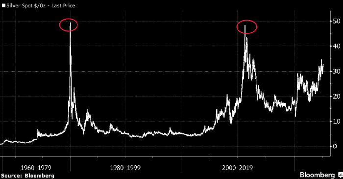 Цена серебра. Источник: Bloomberg