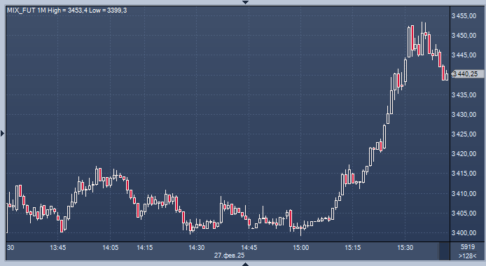 График фьючерса на индекс Мосбиржи интервалами в 1 минуту