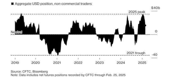 Они смотрят на долгосрочные перспективы, связанные с объявлениями о тарифах. По их мнению, перспективы доллара только ухудшаются. Он уже не получает поддержку за счет идеи о том, что импортные пошлины возродят инфляцию и процентные ставки останутся высокими. Теперь есть опасения, что неопределенность вокруг тарифов ослабит экономику, которая уже показывает признаки охлаждения.