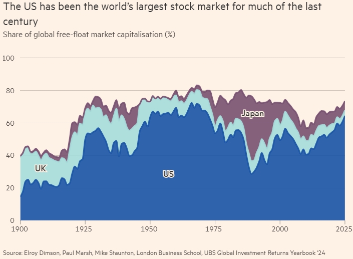 По данным UBS Global Investment Returns Yearbook, к моменту своего пика в конце 1960-х годов на долю США приходилось более 70 процентов мирового инвестиционного рынка.