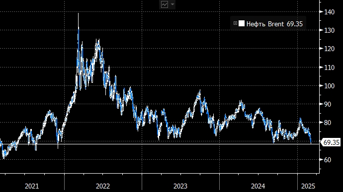 Котировки фьючерсов на Brent 5 марта падали ниже 69 долларов за баррель и достигали 68,33 доллара за баррель — самого низкого уровня с декабря 2021 года.