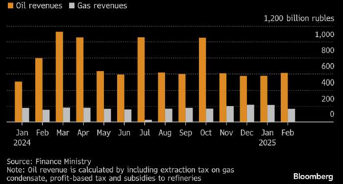 Показатель составил 610 млрд рублей (-23% г/г), и агентство объясняет столь слабую динамику вероятным сокращением добычи на проектах с более высоким налогообложением в рамках сделки ОПЕК+. Февральские доходы бюджета подсчитываются на основе январской добычи, напоминает Bloomberg.
